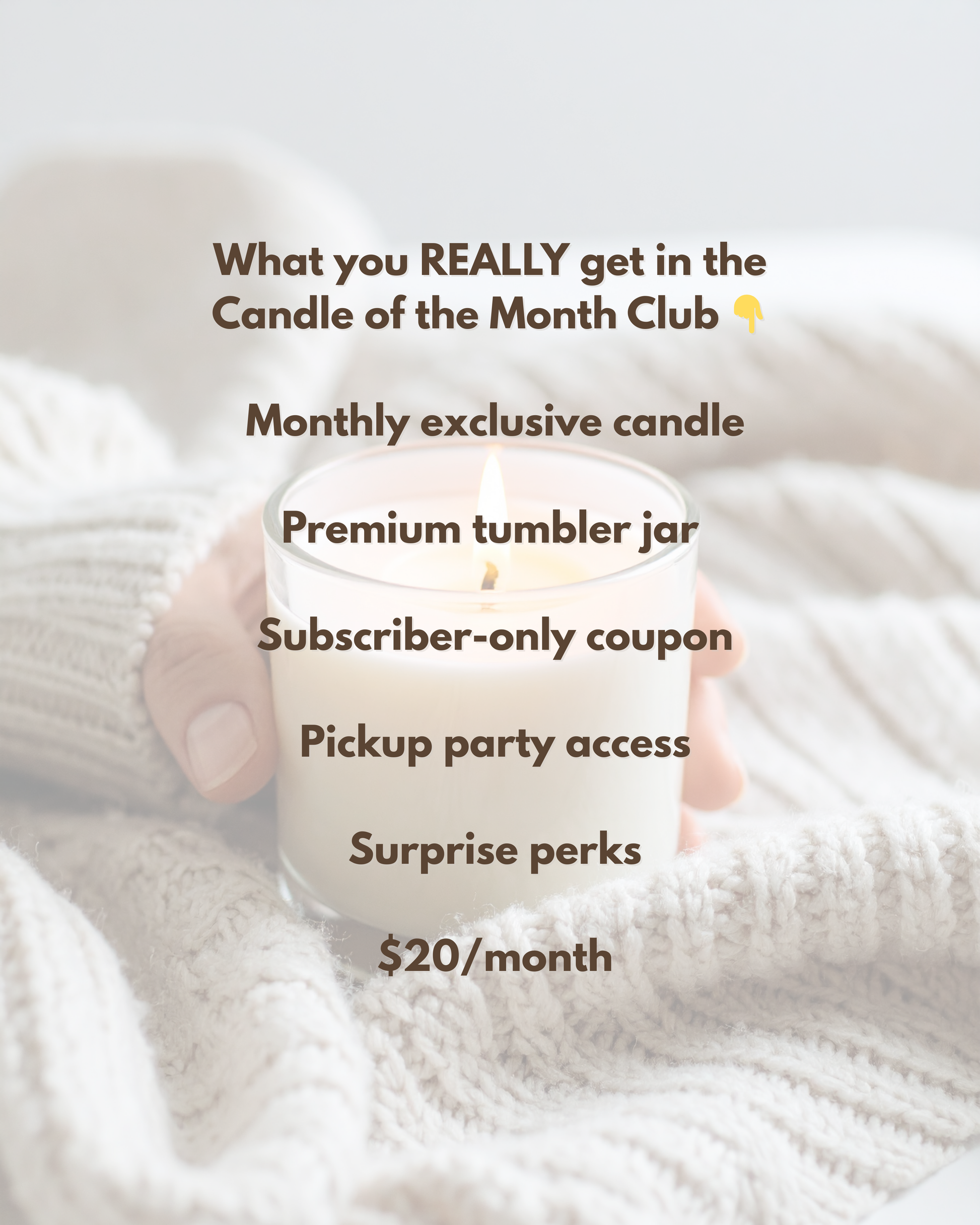 Every month is a little surprise, a little treat, and a whole lot of cozy fun. If you love collecting candles, trying new scents, and being part of something special, this is YOUR club.