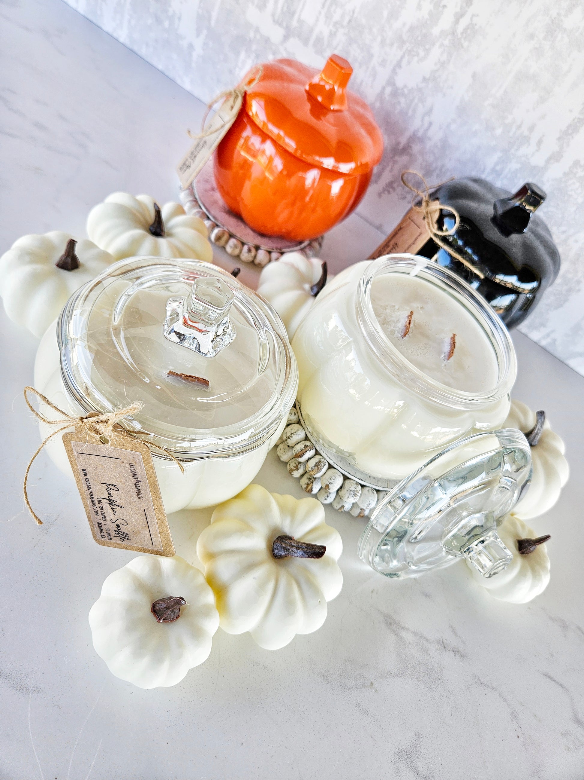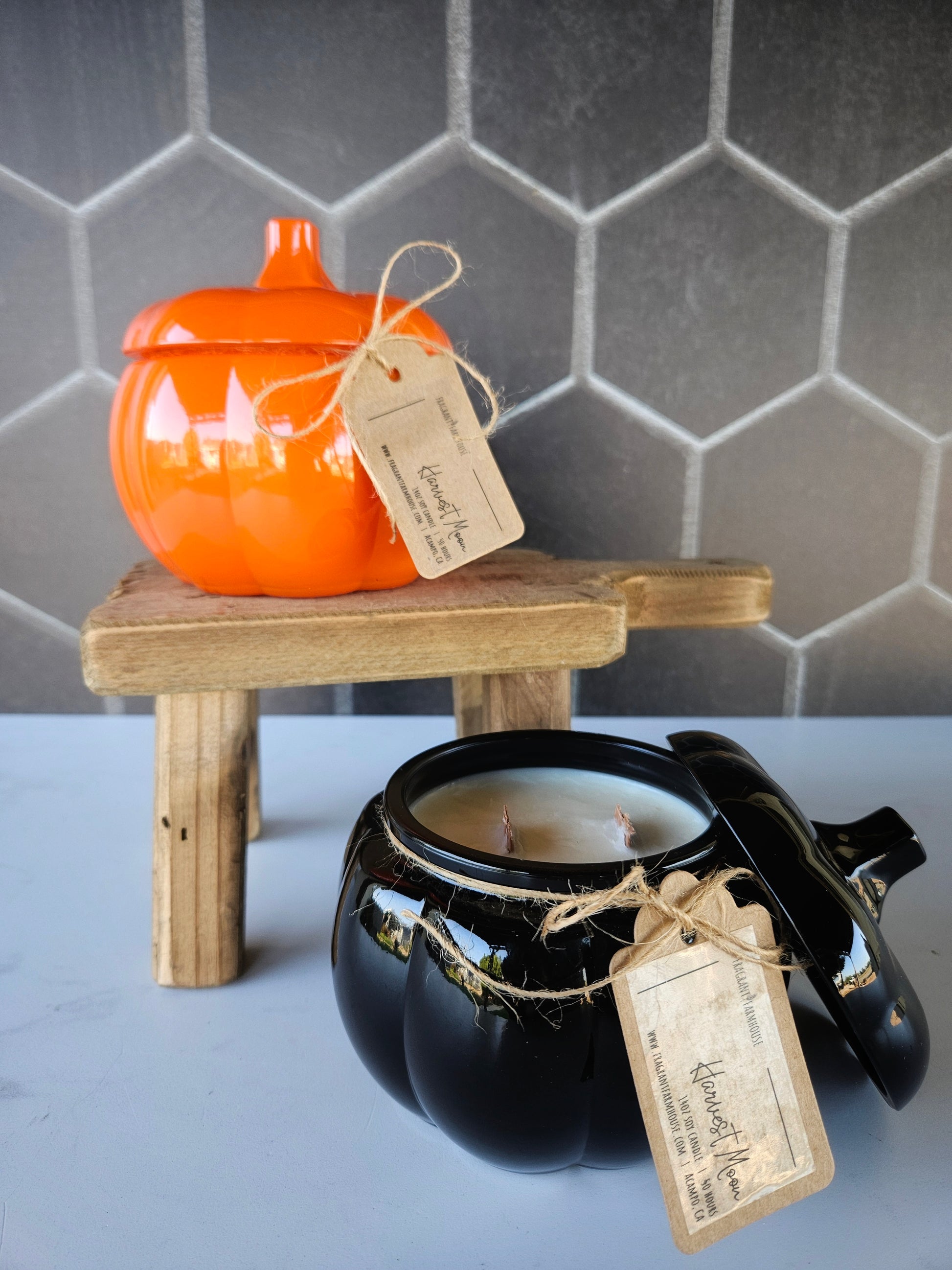 It's pumpkin season! Add this adorable pumpkin candle to your decor. Made with soy wax, phthalate free fragrance, and two wood wicks for the perfect amount of ambiance.